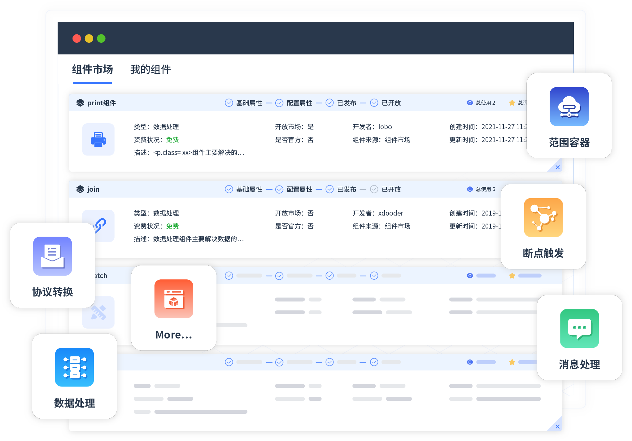 针对集成场景,1xbet官方app提供组件市场,例如协议转换、消息处理、文件操作等。除平台提供的组件外,客户可以自定义所需组件。